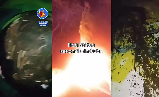 Dos vecinos de la zona confirmaron a ADN Cuba que, en efecto, habían prendido fuego al monumento, aunque las llamas no consumieron la gigantografía.