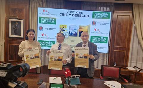 El vicepresidente primero de la Diputación Provincial, Víctor López de la Parte, y la técnico de comunicación de la Fundación Caja Rural, Laura Huertos, han acompañado al director del grupo de coros y danzas Doña Urraca, Miguel Ángel Santos, en la presentación de estas actividades, que darán comienzo este viernes con la exposición de Indumentaria Tradicional Española a Escala.