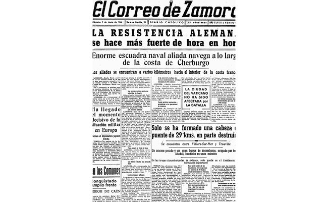 El 6 de junio de 1944, "El Correo de Zamora", diario de la tarde, publicaba que aquella misma mañana se había producido el "Desembarco de Normandía y que las fuerzas aliadas habían invadido Francia por el Havre, con lo que la Segunda Guerra Mundial había entrado en su momento más crucial.