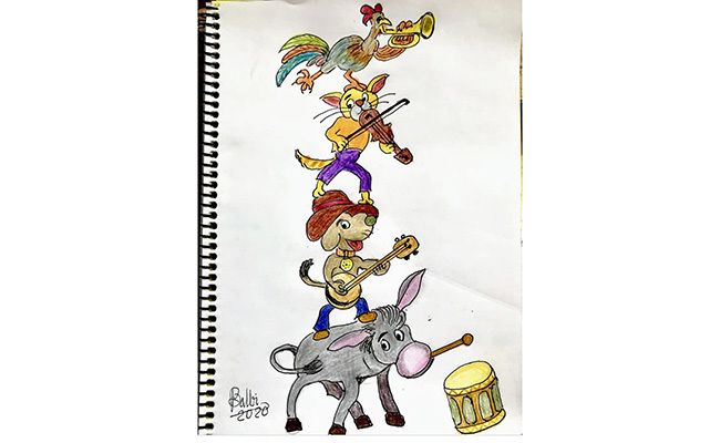 Hoy le dedico a mi nieta Carmen, a mi biznieto Alexander y a todos los que quieran ver mi dibujo y escuchar el cuento de los ALEGRES MÚSICOS DE BREMEN. Es la historia de cuatro animales: un burro, un perro, un gato y un gallo que vivían en un poblado de Alemania, cuyos dueños decidieron sacrificarlos porque estaban muy viejos y solo consumían comida y ya no eran útiles para el servicio de sus respectivas casas.