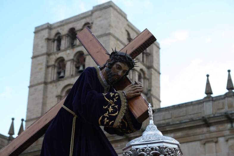Se dice que el Nazareno de San Frontis es el Cristo más milagroso de Zamora. Pudiera ser. Pero también levanta emociones en las almas pías de nuestra ciudad. Duero, Puente de Piedra y Nazareno, protagonistas de la noche del Marte Santo en Zamora. La Esperanza, una virgen muy andaluza, juega un papel secundario en esta cofradía. El Jueves Santo, casi al alba, protagonizará esta película sacra de la Pasión en Zamora.