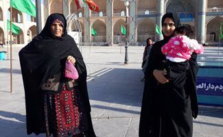 En contraste con estas calles sencillas y humildes nos topamos con la Gran Mequita de Yameh, los Imamzades, santuarios de los descendientes de Imames Chiies, cuya construcción apabulla al contemplar las filigranas de las minúsculas piezas de azulejos de un verde intenso que brilla bajo el sol.