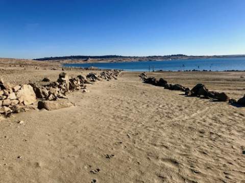 Meses han pasado desde que la ribera más cercana a la ermita de la Santa Cruz luce seca; una situación que se ha acentuado con el 2019 y ha dado paso a un nuevo escenario: el de los restos de un pueblo que, hace ya más de medio siglo, desapareció, al menos físicamente, para siempre. A la vista quedan los huecos en los que, años ha, las vides agarraban sobre el suelo granítico -tan característico de la zona- y en el que algunas cepas continúan resistiendo al paso del tiempo.