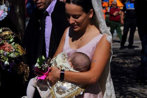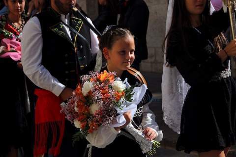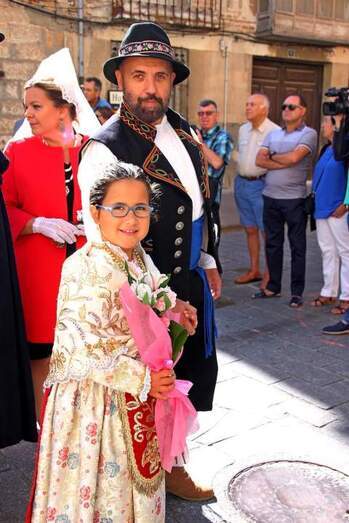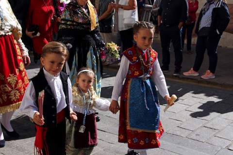 Poco después daban comienzo los actos organizados por la Cofradía de la Santísima Virgen del Canto, con el desfile, acompañado por la Banda de Música La Lira, que recorrió, como es costumbre, las calles que llevan desde la Plaza Mayor hasta la ermita de la Virgen del Canto. A lo largo del recorrido la comitiva lució los trajes típicos de la zona, ellas con trajes de Labradora y de Viuda Rica, también con mantillas y mantones, y ellos con traje y capa castellana.