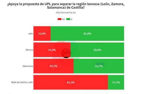Según un sondeo realizado por Electomanía, el 56% de los salmantinos, el 59% de los zamoranos y el 81% de los leoneses apoyaría la creación de la comunidad autónoma de la Región Leonesa, que contaría también con el respaldo de la mayoría de españoles
