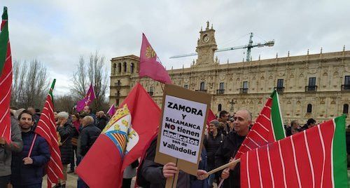 Zamora, presente en la manifestación con su propia pancartaLa crisis demográfica y económica de la provincia de León ha llevado hoy, 16 de febrero, a miles de leoneses a manifestarse en alguna de las tres manifestaciones convocadas por los sindicatos UGT y CCOO: en León, Ponferrada y Villablino. Según los datos de la Policía de León, solo en la capital se habrían unido unos 35.000 manifestantes, acompañados de una impresionante tractorada, con salida desde la plaza de San Marcos, mientras que se habla de 80.000 entre las tres manifestaciones, ¡una cifra histórica!
