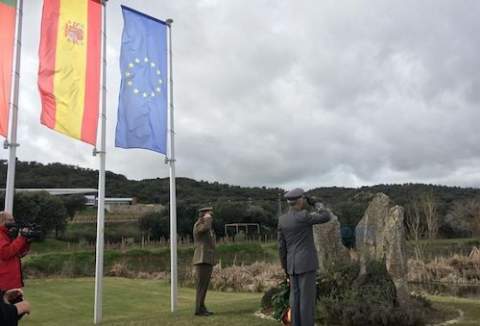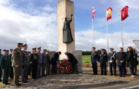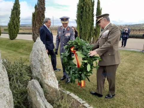 Momento del homenaje, muy marcialPosteriormente, los dos jefes del Estado Mayor estuvieron presentes en la ceremonia conmemorativa del 544 aniversario de la Batalla de Toro, incluyendo la inauguración de una exposición centrada en este aniversario y en la ceremonia de homenaje a los caídos que se realiza junto al monolito que recuerda este hito histórico.
