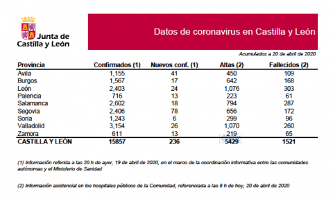 La consejera de Sanidad ha confirmado 236 nuevos positivos en infección por SARS-CoV-2, lo que sitúa el número total de casos confirmados en 15.857 en Castilla y León.