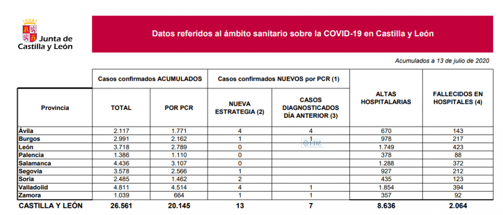 La Consejería de Sanidad ha ofrecido hoy los nuevos datos de la evolución del coronavirus en la comunidad, donde se han notificado 13 casos detectados de la COVID-19, durante el fin de semana, de los que siete se consideran activos y nuevos, al haberse diagnosticado en las últimas 24 horas: cuatro en Ávila, uno en Valladolid, Burgos y Zamora. Estos últimos contagios, sitúan la cifra total en 26.548 personas afectadas por coronavirus en nuestra comunidad y, de esa cifra, 20.132 han sido confirmados mediante PCR.