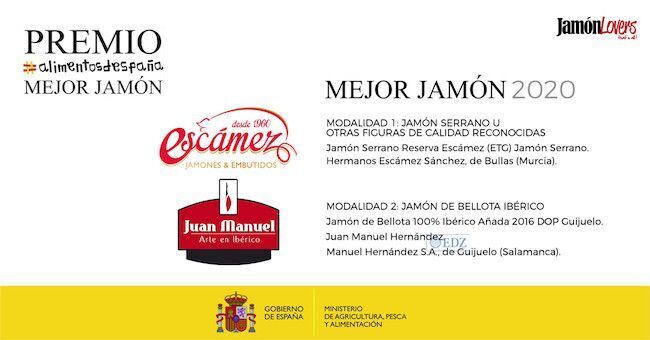 El Ministerio de Agricultura, Pesca y Alimentación ha publicado en el Boletín Oficial del Estado la concesión del Premio "Alimentos de España al Mejor Jamón 2020", en sus categorías de "Jamón de Bellota Ibérico" y "Jamón Serrano u otras figuras de Calidad Diferenciada".