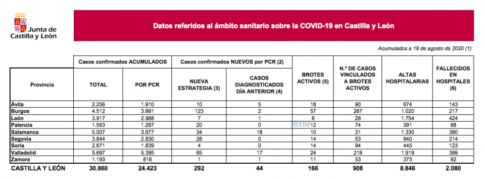 La Consejería de Sanidad, en el día 60 de la llamada "nueva normalidad", ha confirmado hoy 292 nuevos casos de contagios de coronavirus, con lo que su número actual acumulado es 30.860; de esa cifra, 24.423 son confirmaciones a través de pruebas PCR, de esos casi 300 positivos, solo 44 tienen diagnóstico durante las últimas 24 h. y síntomas, uno en Zamora, donde sumamos ya 816 contagios confirmados con PCR desde marzo.