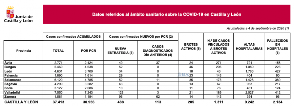 La Consejería de Sanidad, en este día 196 desde que se declaró el estado de alarma y 76 de la llamada "nueva normalidad", ha informado sobre la evolución de la pandemia de coronavirus en la comunidad, donde hoy destaca la incidencia en Zamora, con una gran subida, provocada por los más de 60 positivos asociados al brote de una residencia en El Puente de Sanabria.