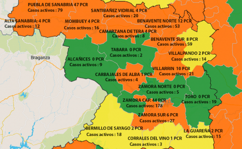 Las zonas básicas que se siguen más de cerca y más preocupan a la Consejería de Sanidad en la actualidad son Lumbrales (Salamanca), con 62,85 positivos por 10.000 habitantes, con casos vinculados a una "no-fiesta", Riaza (Segovia), con 56,57 positivos por 10.000 habitantes; Valladolid Rural y, desde ayer, el Puente de Sanabria y la ZBS de Puebla de Sanabria, a la que pertenece, con 76,30 casos positivos por cada 10.000 habitantes, aunque tenemos una de las incidencias más altas de la comunidad, las autoridades consideran el foco controlado, al estar localizado el foco en una residencia.