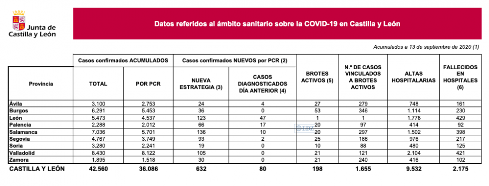 La Consejería de Sanidad ha ofrecido nuevos datos sobre la evolución de la pandemia en nuestra comunidad, en el día 205 desde que se decretara el estado de Alarma. Hoy, baja el número de contagios en comparación con los preocupantes 930 contagios comunicados ayer, con 632 casos positivos por SARS-CoV-2; con especial incidencia, una jornada más, en Salamanca, Valladolid y León, que pasan de los 100 positivos acumulados. Con los 632 positivos confirmados hoy, el número actual acumulado es de 42.560 casos y, de esa cifra, 36.086 han sido confirmaciones través de pruebas PCR.