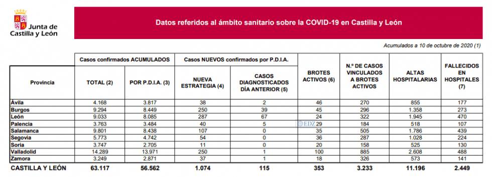 Un día más, León, Burgos y Valladolid son las provincias más afectadas, con la mayoría de los más de mil nuevos contagios notificados hoy.