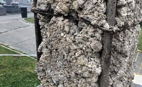 Además, "los técnicos municipales han aconsejado su inmediato derribo. Las imágenes hablan por sí solas y no necesitan mayores explicaciones. Una vez que se ha quitado la plaqueta de granito, lo que está debajo deja patente que no se puede mantener".