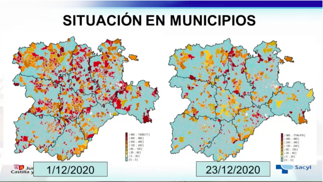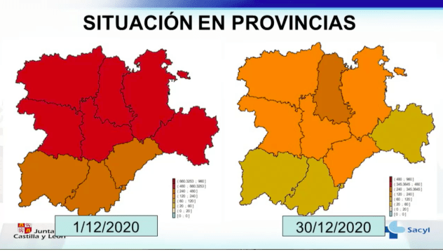 La incidencia en 14 días, es alta también, tras Palencia, en Burgos, León y Segovia, con entre 150 y 250 casos en 14 días por 100.000 habitantes. Con menos de 150 casos, estarían Ávila, Salamanca, Soria, Valladolid y Zamora, aunque, mientras Zamora está en claro descenso de la incidencia, Ávila, Salamanca, Soria y Valladolid empiezan a subir en incidencia.
