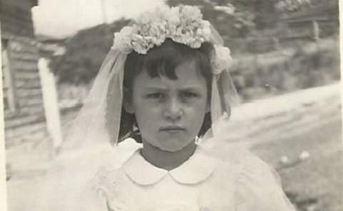 Hoy, día de copiosas nevadas en todo el país, me encuentro con una fotografía donde está mi querida hermana Manoli con su vestidito de comunión. Está fotografiada junto a la casa donde vivíamos allí en el Salto del Esla, nuestro pueblo. Eran unas casas, todas iguales. Se encontraban distribuidas haciendo calles. Algunas tenían balcones y escaleras, otras no. Se ajustaban al desnivel del terreno. En aquellas casas vivimos nuestros primeros años de infancia con nuestros padres junto a las familias de nuestras amiguitas que, como nosotras, vivían allí.