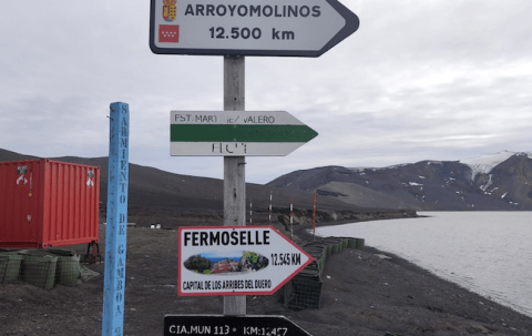 El Ejército de Tierra, en misión en el continente helado, ha instalado una señal en dirección a la localidad zamorana, que queda a "solo" 12.500 km de distancia.