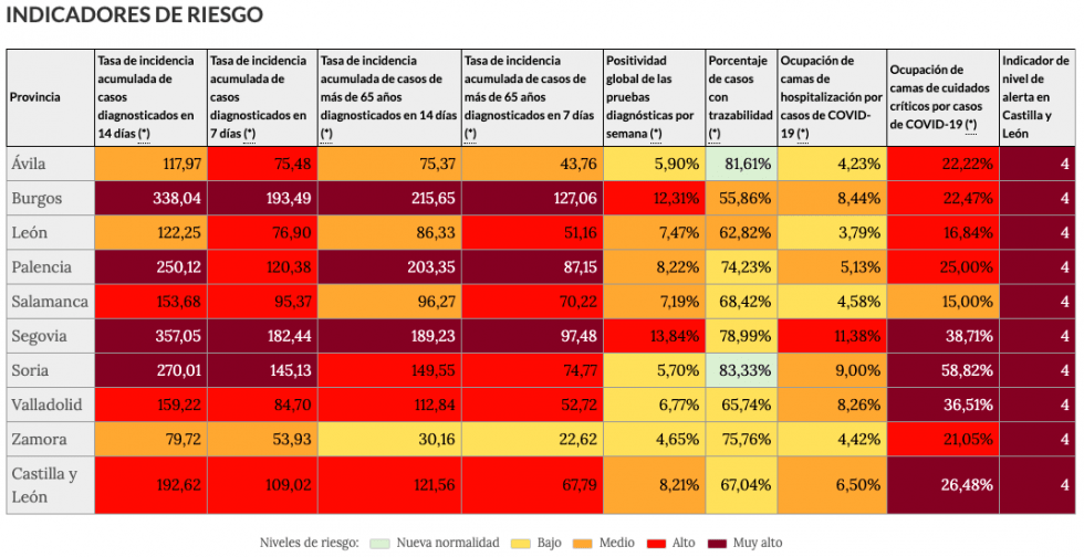 Según estos nuevos datos de hoy, las provincias con más casos nuevos son Burgos, con 47; Valladolid, con 34 y León, con 32 casos. Los mejores datos los tenemos en Soria, con tres casos, seguida de Ávila y Zamora, donde hoy sumamos 12 nuevos positivos, once con diagnóstico del día anterior (ayer fueron 15). Hace una semana, en Zamora se notificaron cuatro casos, siendo esta una prueba de la subida de la incidencia en nuestra provincia.