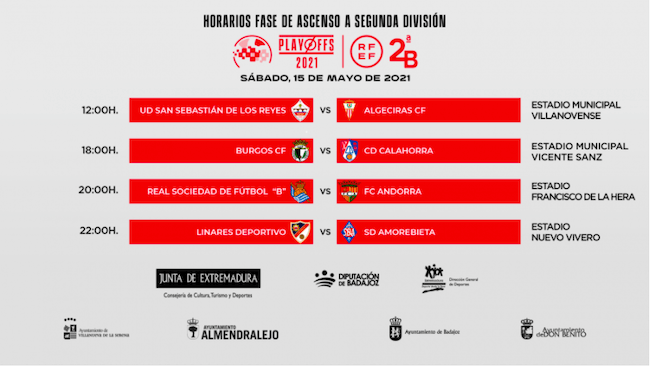 Tras la modificación en el horario del último partido del fin de semana, así quedan repartidos los emparejamientos del play off de ascenso a Segunda División: