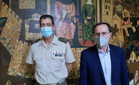 El presidente de la Diputación, Francisco Requejo, recibió esta mañana al General de Brigada, Manuel Maldonado, quien recientemente se ha incorporado como Jefe del Mando de Ingenieros de Salamanca. El General Maldonado está realizando una ronda de visitas institucionales durante estos días.