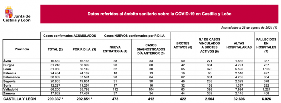 Los brotes activos actualmente en el conjunto de la Comunidad son 421 (44 en Zamora) y los casos positivos a ellos vinculados, 2.444.