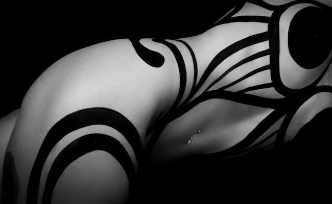Mi pintura es muy gráfica, supongo que al haber estudiado diseño gráfico, lo llevo dentro. Por eso, el body painting que yo pinto es de líneas muy rectas, geométricas, además uso mucho el blanco y negro porque esto hace que la luz destaque las curvas.