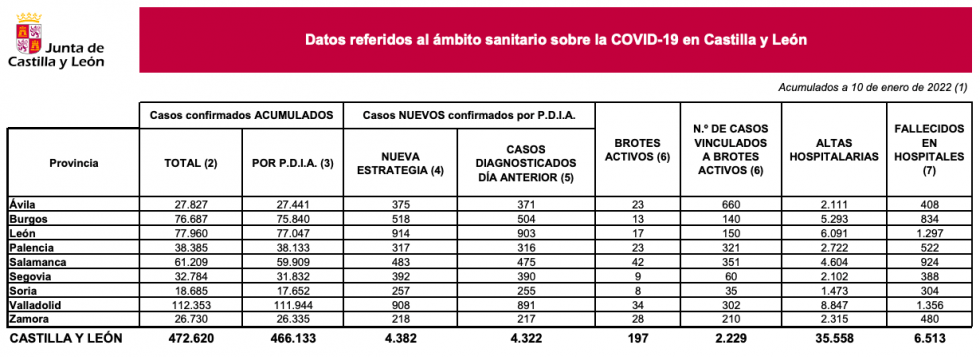 Castilla y León registra hoy 4.382 casos de contagio de SARS-CoV-2, con lo que su número total de personas que se han contagiado desde el inicio de la pandemia es de 472.620. De esa cifra, 466.133 positivos han sido diagnosticados mediante pruebas de infección activa.