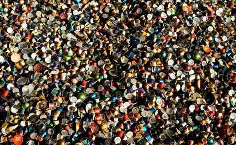 Todas las cápsulas (de plástico y aluminio) llegan a la planta de reciclaje y son trituradas para poder extraer los posos de café.