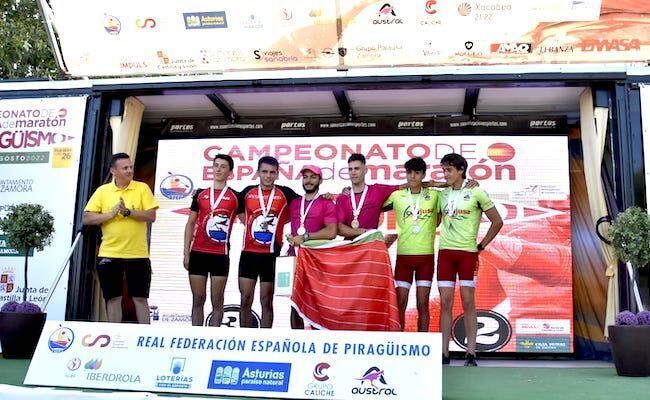 Dos de las grandes promesas del piragüismo zamorano han vuelto a demostrar, esta vez en casa, su gran potencial y buen estado de forma, al lograr subirse a lo más alto del podio en la categoría Juvenio K-2 22.600 m del Campeonato de España de Maratón, que este fin de semana se ha celebrado en Zamora: Raúl Coco Rodríguez y Spas Dimitrov Naydov, del Club Deportivo Amigos del Remo.