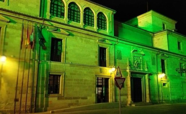 La Diputación de Zamora ilumina de verde la fachada del Palacio de la Encarnación en señal de condolencia y luto por los Guardias Civiles arrollados por una narcolancha este viernes en el puerto de Barbate (Cádiz).