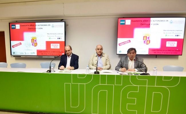 Esta mañana ha tenido lugar la presentación del nuevo curso que oferta la UNED en Zamora dentro de la Cátedra de Población, Vinculación y Desarrollo, "Cuarenta años de Autonomía en Castilla y León", que supone una reflexión sobre el proceso de formación autonómica de nuestra comunidad, tras los cuarenta años transcurridos desde su formación que se cumplieron el pasado año.