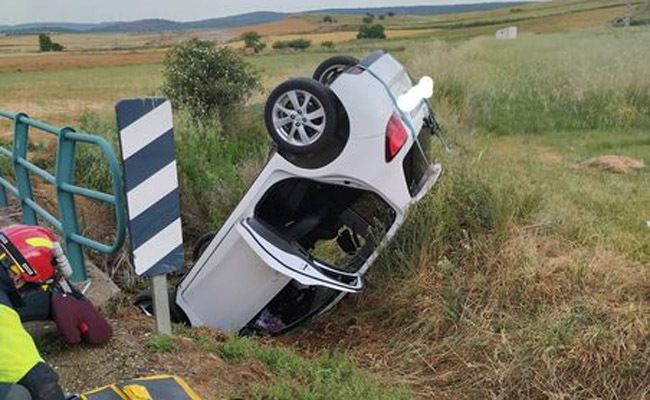 Los bomberos fueron avisados a las 9:05 por el Centro de Emergencias Castilla y León 112 del accidente de tráfico por la salida de la vía de un turismo ocupado por dos mujeres, madre e hija, que estaban atrapadas en el interior del vehículo.