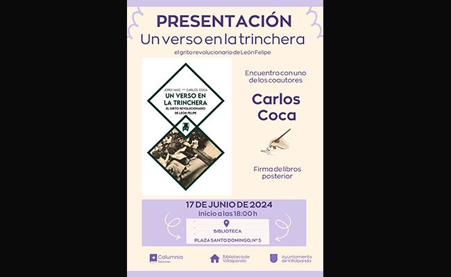 Villalpando acogerá la presentación de "Un verso en la trinchera. El grito revolucionario de León Felipe"