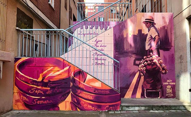 La ciudad cuenta con un nuevo mural promovido por el Ayuntamiento de Zamora, que se incluirá en la ruta artística “Zamora Variopinta”: Una obra ejecutada por la artista zamorana Laura Merayo que tiene como motivos principales dos elementos muy reconocibles para todos los zamoranos: Los ajos y la cerámica, dos de las principales ferias de las Fiestas de San Pedro.