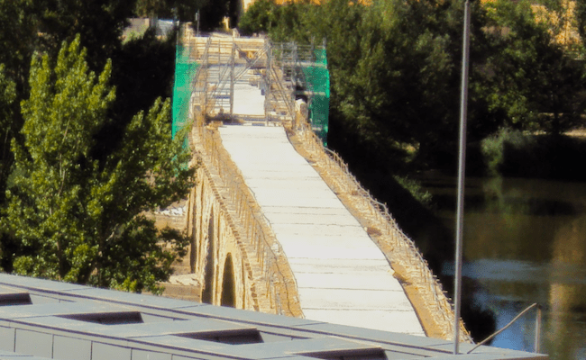 El Ayuntamiento concede una prórroga de cinco meses a la empresa que rehabilita el Puente de Piedra
