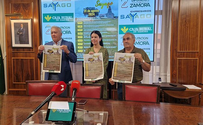 Laura Huertos, técnico de comunicación de Caja Rural, ha acompañado en la presentación a Francisco Rodríguez y José Miguel Diego, de la Asociación de Empresarios de Sayago, que han desgranado el programa que tendrá lugar en ese día de celebración, que será el próximo sábado 31 de agosto, en la Ermita de Gracia de Villamor de Cadozos.