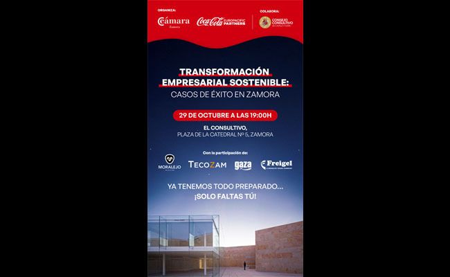 La Cámara de Comercio de Zamora en conjunto con Coca-Cola Europacific Partners (CCEP) celebrarán mañana, martes 29 de octubre de 2024, a las 19:00 en el Salón de Actos del Consejo Consultivo de Castilla y León (Pza. de la Catedral, Zamora) una jornada sobre sostenibilidad en las empresas.