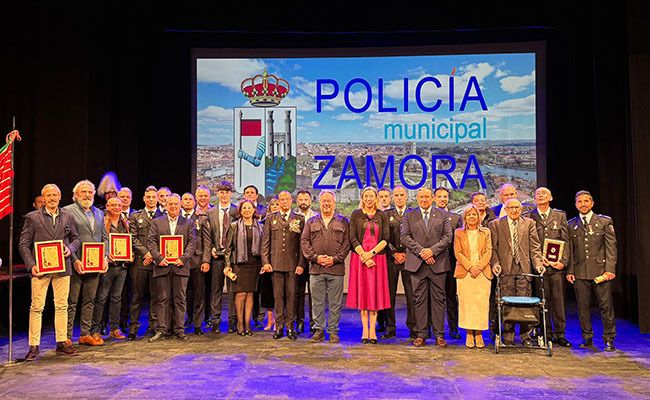 El Teatro Principal ha vuelto a ser el escenario elegido para celebrar el acto institucional con motivo del Día de la Policía Municipal de Zamora, una conmemoración marcada por la tragedia de la DANA en la comunidad valenciana y el recuerdo a Evaristo Antelo, teniente fiscal de Zamora, fallecido en un accidente de tráfico el pasado junio. Precisamente, la entrega de la distinción recogida por su viuda y su hijo fue uno de los momentos más emotivos de la gala y el más aplaudido desde el patio de butacas. También se hizo entrega de una condecoración a la fiscal jefe de Zamora, María Ángeles Cordero Borges.