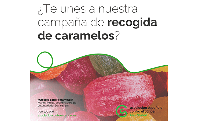 La Asociación Española Contra el Cáncer en Zamora lanza la campaña de recogida de caramelos, una iniciativa solidaria para hacer más amena la estancia de los pacientes oncológicos en el hospital. A través de la donación de caramelos, buscamos brindar momentos de dulzura y alivio en las esperas, un gesto sencillo pero con un gran impacto positivo en su bienestar.