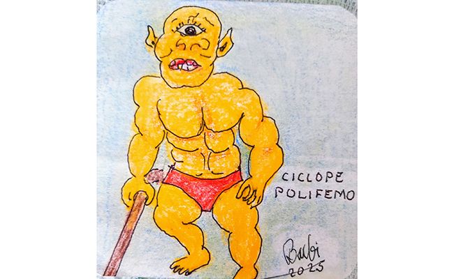 ULISES y sus hombres regresaban de la Guerra de Troya haciendo un alto en su navegación en la isla de los Cíclopes para repostar agua y alimentos. Cuando llegaron a la cueva, en la que encontraron abundancia de quesos, fueron sorprendidos por el cíclope POLIFEMO que los dejó allí encerrados.