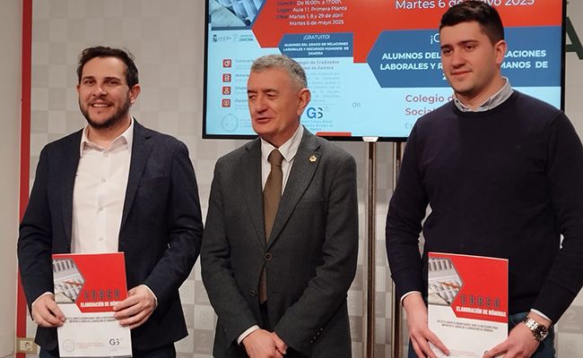 Estuvo acompañado por el presidente del Colegio Oficial de Graduados Sociales de Zamora, Isaac Macías Fontanillo; el secretario del colegio, Carlos Villar; y el gerente del Consorcio de Relaciones Laborales, Germán Gumiel. Este consorcio provincial tiene como finalidad permitir a los zamoranos el acceso a la carrera de Grado en Relaciones Laborales y matricularse al curso de adaptación para que los diplomados obtengan el Grado. También, colaboraciones como este curso tan importante para que los universitarios obtengan una formación práctica y “de la vida real”, fundamental para desarrollar el trabajo al que en un futuro se van a enfrentar.