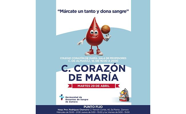 Además, esta semana, el martes por la tarde, 29 de abril, el Colegio Corazón de María organizará una colecta de donación de sangre muy especial, dentro de una jornada denominada Feria Coraciencia, dedicada a la ciencia, como colofón final de un gran trabajo del equipo docente y de su alumnado, además cuentan con grandes colaboraciones de conocidos zamoranos.