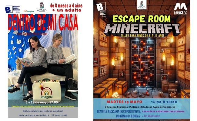 13? de mayo: (Biblioteca Avenida Galicia16:30 h.) Escape Room Minecraft. Con Mini2ac. Para niños y niñas de 8 a 16 años.