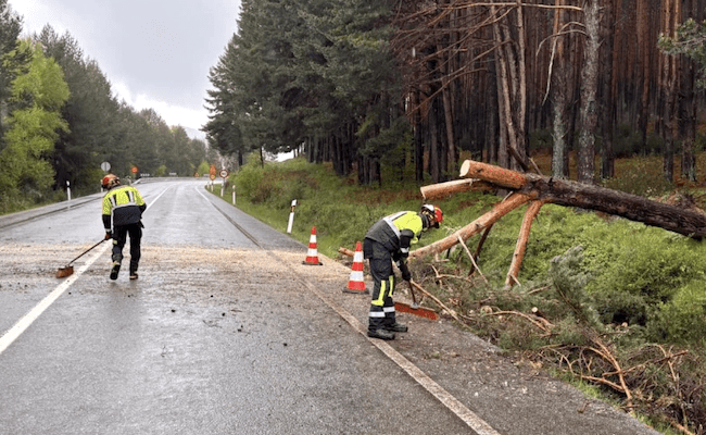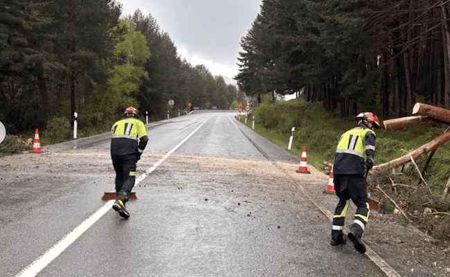 Efectivos del Parque de Bomberos Zona Norte del Consorcio Provincial de Zamora, con base en Rionegro del Puente, intervinieron hoy para retirar un árbol caído sobre la calzada de la carretera Nacional 525, a la entrada de Requejo de Sanabria.