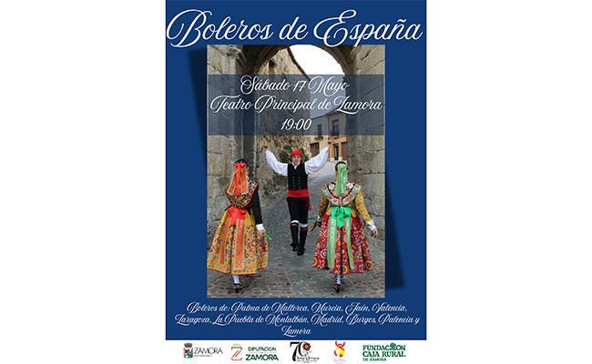 Este sábado, 17 de mayo, a las 19:00 horas, el teatro Principal de Zamora acoge un espectáculo único donde actuarán varias parejas de grupos procedentes de las localidades donde se baila el bolero: Madrid, Murcia, Zaragoza, Mallorca, Valencia, Jaén, La Puebla de Montalbán, Burgos, Palencia y Zamora.