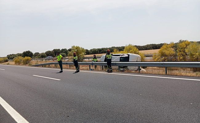 El aviso fue recibido por el Centro de Emergencias 1-1-2 de Castilla y León, que alertó al Consorcio Provincial de Prevención y Extinción de Incendios, Salvamentos y Protección Civil de la Diputación de Zamora. Una dotación de bomberos se desplazó de inmediato al lugar del siniestro, donde hallaron un turismo volcado lateralmente sobre la mediana.