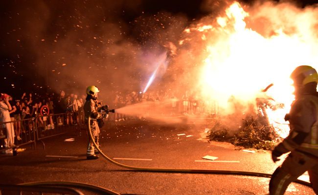 Unos minutos antes del encendido de la hoguera, que fue unos minutos antes de la media noche, cayeron unas gotas de lluvia que parecía que podían deslucir la noche, pero el agua paró a tiempo para poder encender la hoguera y dar paso a la fiesta posterior, amenizada por la Renovation Experience, que hizo vibrar a todos los asistentes a este tradicional evento, en la noche más corta del año.
