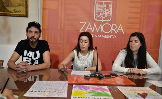 Sara de la Higuera, concejala de Educación y Formación y Juventud, y Claudia Izquierdo, presidenta de MUBAZA, han presentado esta mañana este próximo festival de música zamorana que se celebrará en el céntrico escenario del Cuzo, situado en la plaza de Castilla y León, desde el 26 hasta el 29 de junio, dentro de la programación de las fiestas de San Pedro.
